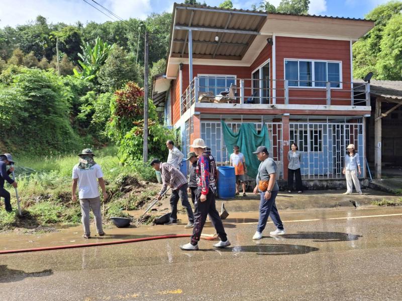 ทำความสะอาดท่อน้ำ ร่องน้ำ ที่มีการอุดตัน ในพื้นที่หมู่ที่ 5 บ้านเพกา