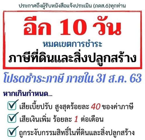 ประกาศเรื่องการชำระภาษีที่ดินและสิ่งปลูกสร้าง