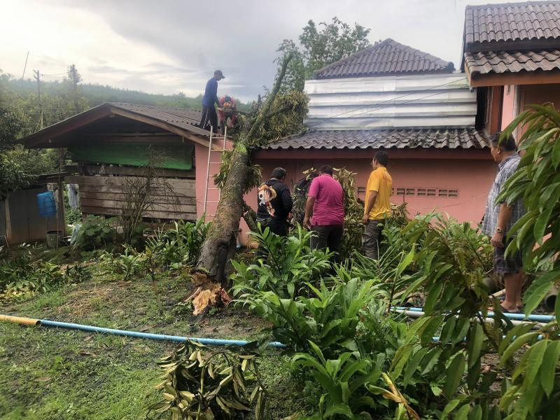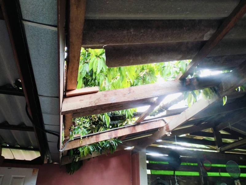 รายที่ 1 ต้นทุเรียนล้มทับหลังคาบ้าน ทำให้กระเบื้องหลังคาแตก
