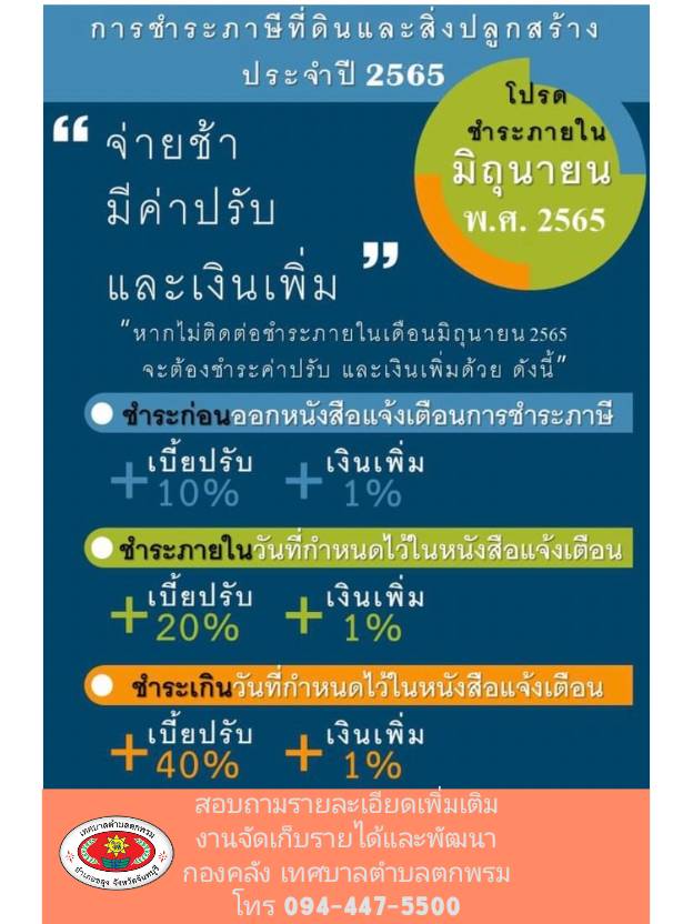 ภาษีที่ดินและสิ่งปลูกสร้าง จ่ายช้ามีค่าปรับและเงินเพิ่ม